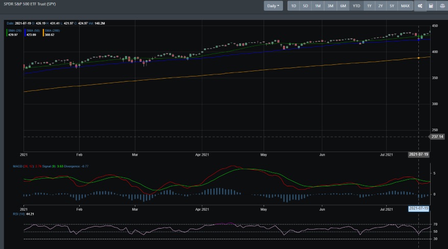 Please take a look at the S&P 500 image below. Looking at the daily price action below, it is clear as day that we are in a bull rally. This year alone, we had 7 market dips. Each dip was accompanied by a FOMO crowd that right now is guiding the market. As we discussed earlier this year, the past 10 market dips have been shallow and narrow. On Monday 7/19/2021, the S&P 500 dropped over 68 points, the 10-year Treasury fell to 1.18%, oil dropped below $70 and gold held support. If you were ready to sell out, then you would have missed the next day's action. That following Tuesday, the S&P 500 gained 64 points to set up a turnaround week for all major indexes. Friday's closing wrapped up with the S&P 500, Nasdaq Composite, and Dow 30 all at record highs. So much for the COVID delta variant correction that many called on Monday.