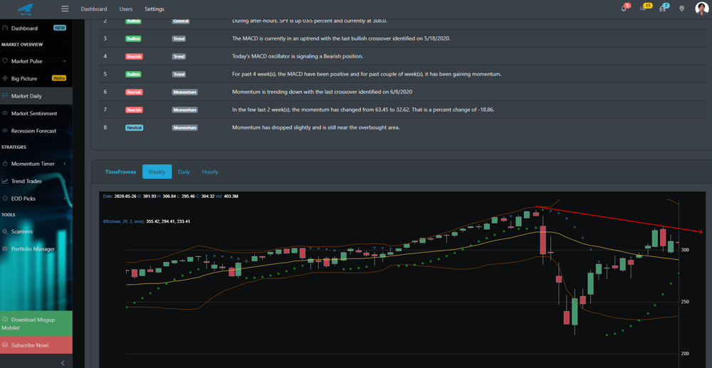 For the past few weeks, the market has been in consolidation.  Since the March lows, SPY has not been able to reclaim its high of 322.39.  Likewise, S&P 500 has stalled out on trying to surpass 3,155.  That was back on June 10. Since then, it has been tug-o-war between the bulls and the bears.  In fact, the indexes have stalled out on multiple occasions at the technical resistance line of 3,155.  If the broader market is to trend higher, it will need to break out in the next month or so to send the index into the post-coronavirus highs.  A failure could easily send the indexes sharply lower.